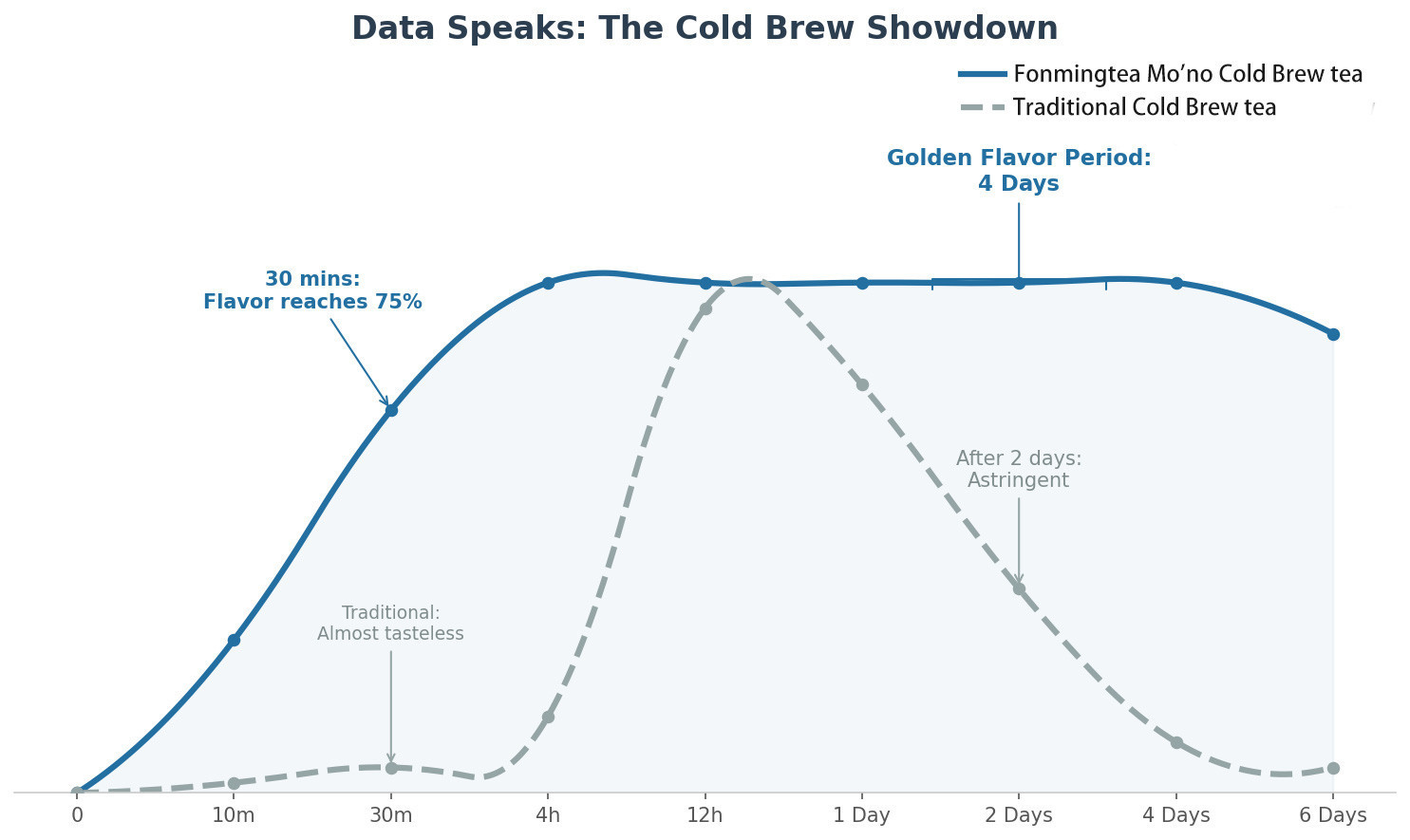 (Blue Line: Fonmingtea Mo'no Cold Brew tea / Gray Line: Traditional Cold Brew tea )