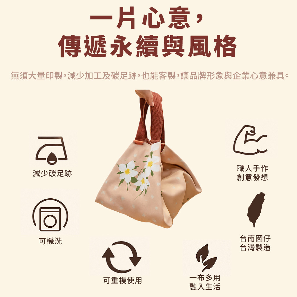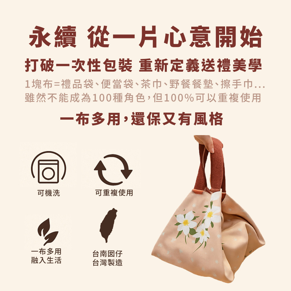 ◆ 永續設計:一片布巾 = 禮袋 + 日常生活小幫手